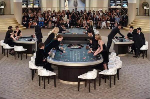 另一场大秀——模拟“中国人”形象的模特(灵感来源自:五四青年发型、民国绗缝小棉袄、老棉布鞋元素的应用)、赌场中的俄罗斯轮盘、美国嘉宾、红发韩国人的点缀,将今日世界的格局,清清楚楚、明明白白摆在了大家眼前——这就叫“老佛爷”!