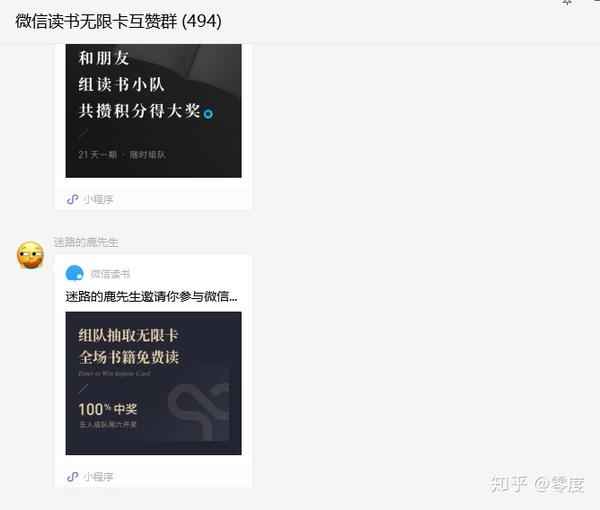 在使用过程中发现一个问题,就是要不断的分享,才能保证任务完成,后来就组了一个读书群,里边都是微信读书的一些书友们,大家每天都把这些活动分享到读书群里,互相做活动,氛围挺不错的,有兴趣的朋友可以一起加入,分享读书。