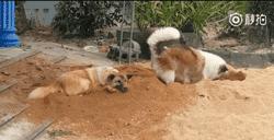 当狗子们去别人的领地做客时,它们对一切都无所谓,毫无攻击性。