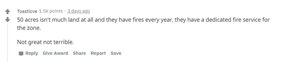 50英亩的土地根本不多,每年都有火灾发生,他们为该地区准备了专门的消防服务。
