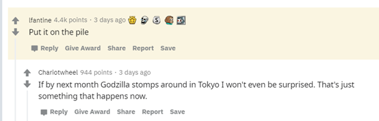 如果到下个月哥斯拉在东京出现,我都不会感到惊讶,看看现在发生的事情。