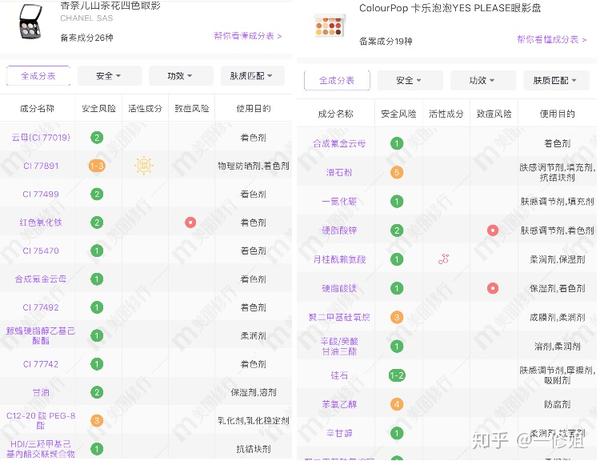 图片来源于美丽修行APP一般而言,市面上眼影主要有以下几个主要成分: