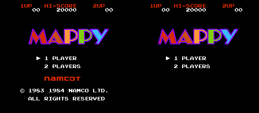 左图是原版Mappy(猫捉老鼠),右图是盗版合卡中的Mappy。